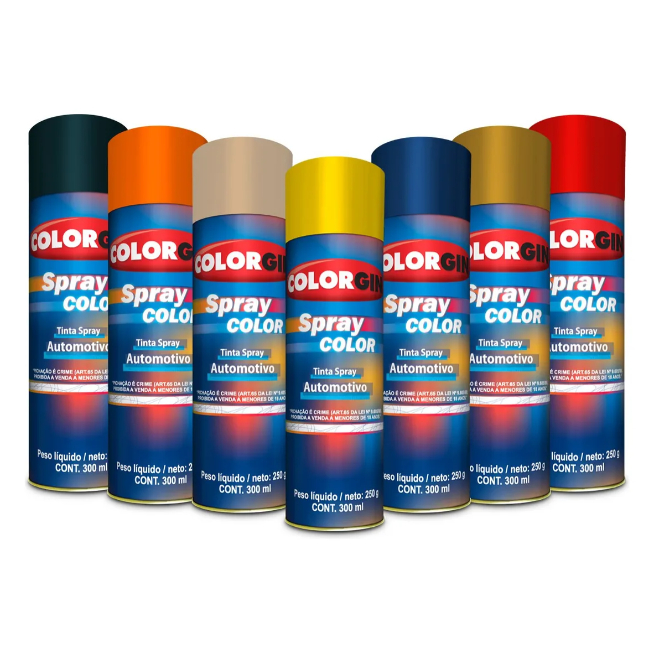 Tinta Spray Automotiva Colorgin – Acabamento Profissional e Alta Resistência Renove, retoque ou personalize seu veículo com a Tinta Spray Automotiva Colorgin, desenvolvida para oferecer acabamento de qualidade profissional e máxima praticidade. Com tecnologia avançada, ela garante secagem rápida, excelente cobertura e alta resistência às ações do tempo e ao desgaste do dia a dia. Alta aderência em superfícies metálicas Acabamento brilhante e uniforme Fácil aplicação – uso direto na peça limpa e seca Secagem rápida Ideal para rodas, carenagens, para-choques, retrovisores e muito mais Conteúdo: 300 ml Indicação de uso: Recomendado para automóveis, motos, bicicletas, eletrodomésticos e objetos metálicos em geral. Dê um novo visual ao seu veículo com a qualidade, confiança e tradição da Colorgin, referência em tintas spray no Brasil.