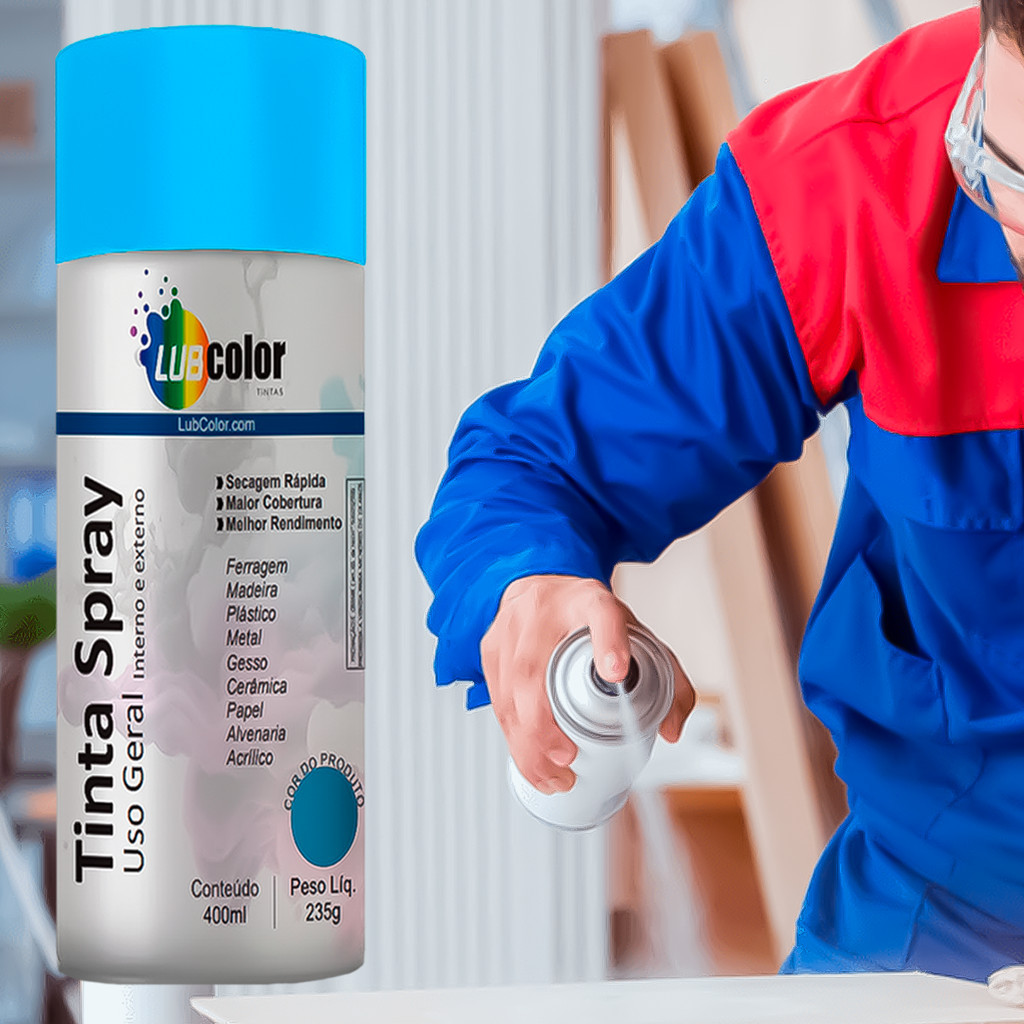 Tinta Spray Azul Claro Uso Geral 400ml Madeira Plástico Metal Isopor Papel