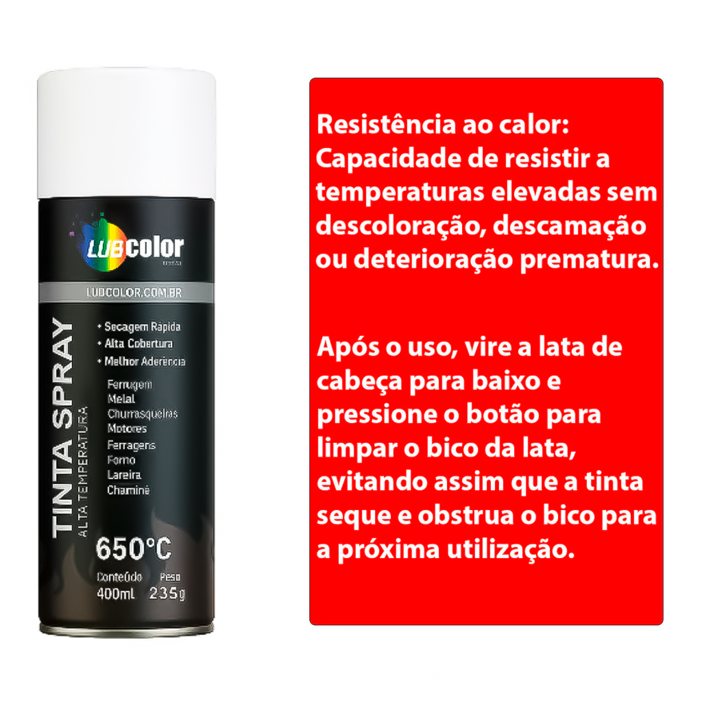 Tinta Spray Branco Alta Temperatura 400ml Madeira Plástico Metal Isopor Papel Geral Secagem Rápida