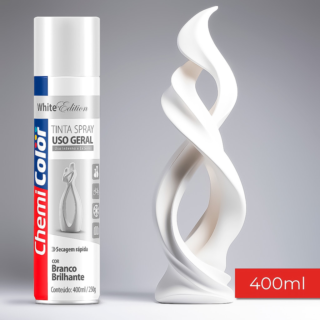 Tinta Spray Branco Brilhante 400ml Todas Uso Geral Secagem Rápida