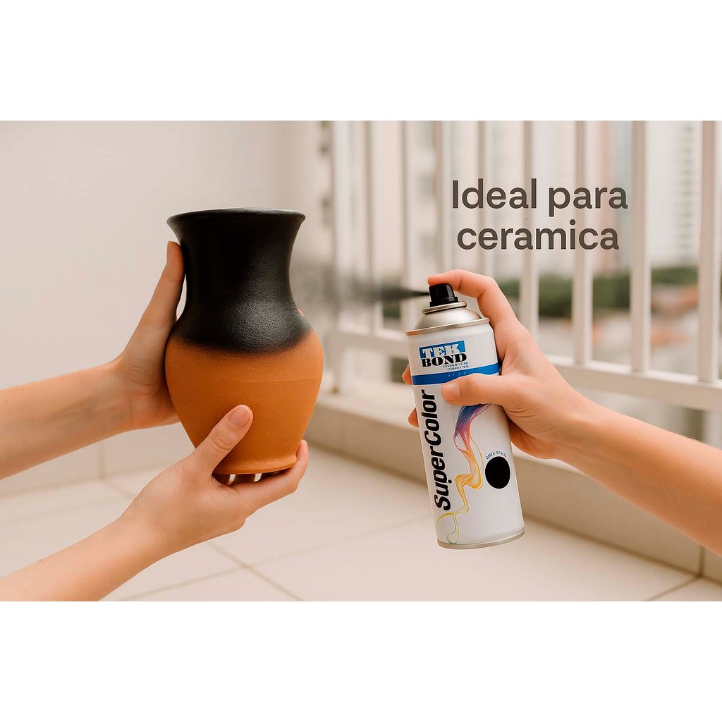 Spray de Tinta TekBond Super Color 350ml – Secagem Rápida, Multiuso, Diversas Cores A Tinta Spray TekBond Super Color é a escolha ideal para quem busca praticidade, versatilidade e acabamento profissional em projetos domésticos, artesanais ou de manutenção. Com fórmula de alta cobertura e secagem rápida, esse spray oferece resultados duradouros em diversos tipos de superfícies. principais benefícios do produto: Secagem rápida: economize tempo com uma tinta que seca ao toque em poucos minutos Multiuso: ideal para uso interno e externo, em madeira, metal, plástico, cerâmica, papel e muito mais Disponível em diversas cores e acabamentos: escolha entre opções brilhantes, foscas, metálicas ou vernizes como usar: Agite bem a lata por pelo menos 1 minuto antes do uso Aplique a uma distância de aproximadamente 25 cm da superfície Faça movimentos uniformes e em camadas finas para melhor cobertura por que escolher a TekBond Super Color: Excelente rendimento e alta aderência Fórmula com menor odor, ideal para uso doméstico Aplicação limpa e prática com bico spray ergonômico perfeita para: Artesanato Reformas e reparos em casa Personalização de objetos e móveis Com qualidade reconhecida da marca TekBond, este spray é um dos mais vendidos e bem avaliados do mercado. A combinação entre preço acessível, variedade de cores e desempenho superior faz dele uma opção imbatível para qualquer tipo de pintura rápida. compre agora e transforme seus projetos com praticidade e estilo! perguntas frequentes essa tinta serve para metal e madeira? Sim, ela é indicada para madeira, metal, plástico, cerâmica e outros materiais comuns. quanto tempo leva para secar? A tinta seca ao toque em cerca de 15 minutos. Para manuseio completo, recomenda-se aguardar 24 horas. posso usar em áreas externas? Sim, o produto tem resistência adequada para ambientes internos e externos. preciso aplicar primer antes? Em superfícies lisas ou muito porosas, o uso de primer pode melhorar a aderência e durabilidade da tinta.