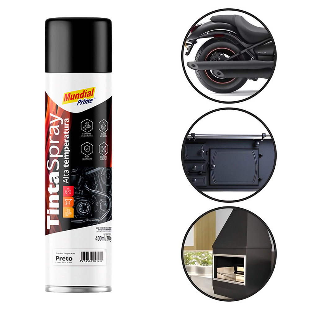 Tinta Spray Preto Fosco para Alta Temperatura 400ml Mundial Prime AE01000100