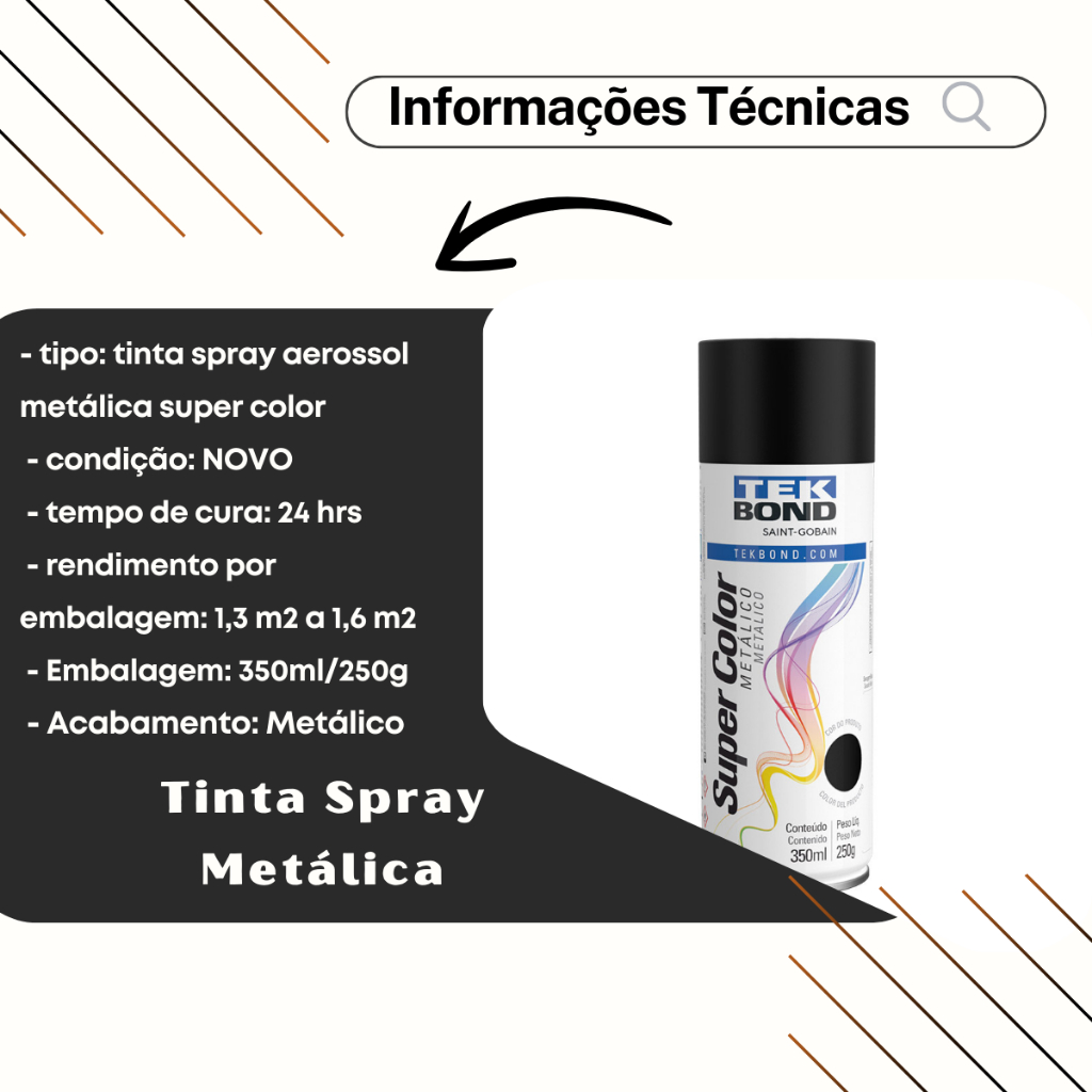 Tinta Spray Preto Metálico Tek Bond 350 ML 250G