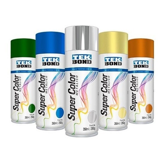Informações:Tinta acrílica desenvolvida com alta tecnologia para um perfeito aspecto metálico em artesanatos, madeiras, cerâmicas, decorações internas e metais. A tinta spray Super Color Metálico da Tekbond impressiona pela variedade. São treze cores incríveis: prata, azul, cromado, dourado, vermelho, cobre, preto, verde, bronze, ouro, rose gold, rose millennial e cobre rose. É o produto perfeito para dar aspecto metálico em móveis, jarros, louça, peças artesanais etc. Você pode aplicar a tinta spray em madeiras, cerâmicas, decorações internas e muito mais! Por serem materiais livres de oxidação, ferrugem e corrosão, você terá apenas a parte boa: a beleza! Afinal, o acabamento metálico chama atenção pelo brilho, que agrega elegância e sofisticação. E um detalhe importante: a tinta spray também pode ser aplicada em metais! É um excelente recurso para deixar objetos antigos com cara de novos, além de oferecer uma camada extra de proteção às peças. Com a tinta spray Super Color Metálico da Tekbond, tudo fica com um efeito extraordinário! Modos de Uso:Remova vestígios de pintura antiga, ferrugem, gordura e poeira. Proteja as partes que não serão pintadas com papel, papelão ou plástico. Para aplicações em metais (ferrosos e não ferrosos) com ou sem oxidação, aplique o Primer Spray Super Color Uso Geral. Espere secar e lixe com lixa d’água 400 para deixar a superfície bem lisa. Agite bem a lata antes do uso e entre as demãos. Se a válvula entupir, retire e mergulhe o bico em thinner ou acetona. Se for preciso, desobstrua o orifício com uma agulha. Aplique de 2 a 3 demãos (camadas) para obter uma pintura uniforme e bonita. Na primeira vez, aplique uma fina quantidade de tinta como base para as outras demãos. Entre cada demão de tinta, aguarde 4 a 9 minutos. Para tocar, aguarde 30 minutos. Para manuseio da peça, aguarde 3 horas. O produto leva 24 horas para atingir a máxima resistência. Para testes mecânicos, a recomendação é esperar 72 horas. Cuidados:Não exponha ou armazene este produto em temperatura superior a 50ºC (risco de explosão). Armazenar as embalagens em local bem ventilado, à temperatura ambiente, distante de fontes de ignição. Área coberta, fresca, seca e ventilada. Armazenar a lata em pé. Estocar em temperaturas inferiores a 50°C. ,Não exponha ou armazene este produto em temperatura superior a 50ºC (risco de explosão). Armazenar as embalagens em local bem ventilado, à temperatura ambiente, distante de fontes de ignição. Área coberta, fresca, seca e ventilada. Armazenar a lata em pé. Estocar em temperaturas inferiores a 50°C. Material onde pode ser aplicado:MadeiraMDFMetalParede