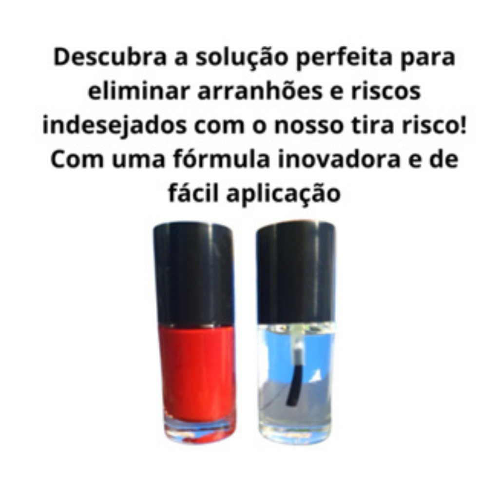 Indicado Para: Remover pequenos riscos e arranhões da pintura do carro. Faça você mesmo o conserto do seu carro, de forma simples, fácil e rápido. Instruções de uso: 1- agite bem o produto e limpe local de aplicação, lixe o local de leve. 2- aplique a tinta e aguarde secar 10 minuto. 3- se necessário aplique a segunda camada de tinta e aguarde 15 minutos. 4- finalize com verniz e aguarde o tempo de secagem de 8 horas. 5- após as 8 horas aplique a cera de polimento para dar ainda mais brilho a pintura. Benefícios do Produto: Pequenos reparos na lataria Devidamente embalado Fácil aplicação Pintura automotiva Alta resistência ao sol e chuva Economia na certa Conteúdo da embalagem: 1- Tira risco tinta padrão 10ml 1- Verniz 10ml 1- Lixa Pequena 1- Manual Cuidados: Manter o produto fechado Aplicar o produto em ambiente ventilado Poderão ocorrer diferenças de cor e textura do acabamento devido ao desgaste pela ação do tempo, ao desbotamento da cor do veículo devido a exposição por muito tempo ao sol, a forma de aplicar, que não é a mesma de uma pintura original de fábrica.