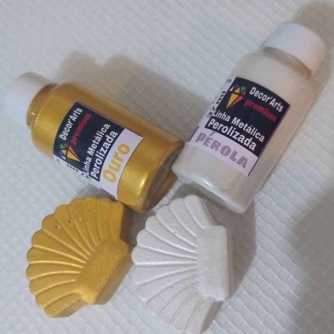 Tintas METALICAS OURO E PÉROLA - Tinta Para Arte e Artesanato, gesso - 37ML CADA