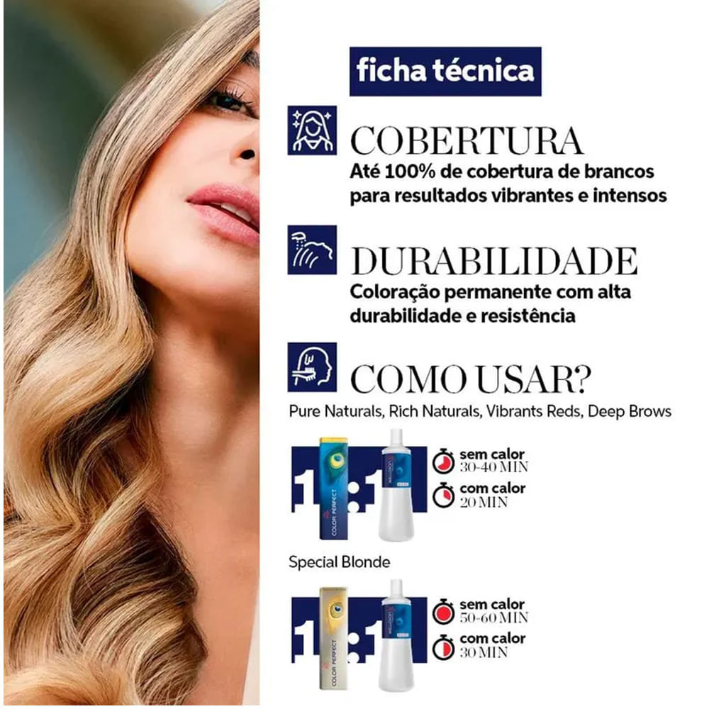 A Tintura Creme Color Perfect proporciona um resultado surpreendente aos cabelos, doa brilho, promove tons iluminados, com aspecto natural. Oferece tons reais e luminosos, efeitos de cor com perfeita cobertura dos fios brancos, de loiros claros e reluzentes a sedosos e brilhantes negros. Além disso, possui o exclusivo sistema de sinergia que combina elementos que garantem um resultado perfeito e uma ótima fixação e durabilidade. Benefícios: - 100 % de cobertura dos fios brancos; - Clareamento de até 5 tons; - Fórmula Multicolor; - Intensificador de Brilho; - Sistema Care Control. Modo de usar: Coloque a tinta no frasco aplicador e agite bem at? ficar homog?neo. Separe o cabelo e aplique da raiz às pontas e espalhe uniformemente em todo o cabelo. Aplique a tinta com o cabelo seco. Retire o produto após 35 ou 40 minutos da aplicação. Sobre a marca: A Wella é uma das maiores empresas de cosm?ticos do mundo. Uma empresa especializada em produtos para cabelos, incluindo shampoos, condicionadores, alisantes, colorações e principalemente tratamentos para todos os tipos de cabelo. A Wella já está no mercado há mais de 140 anos e sempre acompanhando as tendencias e investindo em tecnologia para oferecer o melhor para vocé.