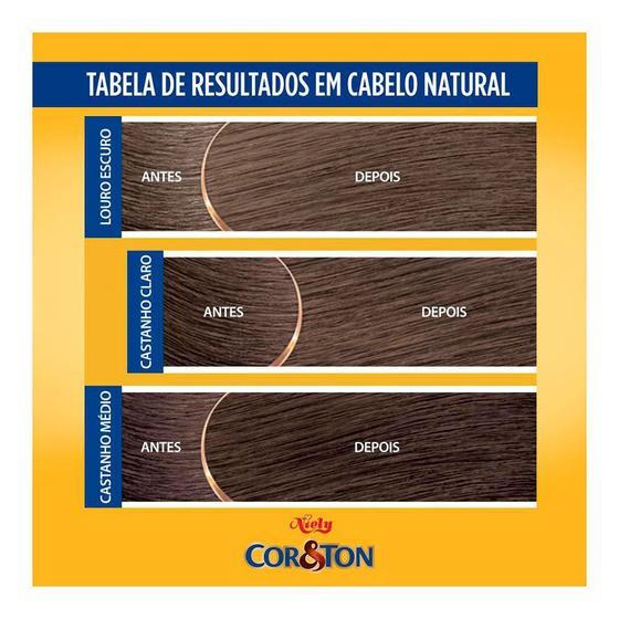 A Tintura Creme Cor e Ton é uma coloração permanente com fórmula de altíssima qualidade. Oferece uma cobertura completa de fios brancos, proporcionando uma cor intensa e luminosa, além de deixar o cabelo macio e nutrido. Benefícios: - Proporciona aos cabelos cores vivas, luminosas e duradouras; - Total cobertura dos fios brancos; - Hidratação, sedosidade e brilho; - Com queratina, gérmen de trigo, silicone e filtro UV que garantem cabelos fortes, nutridos e com máxima proteção; - Com textura cremosa, facilita a distribuição nos fios, fazendo com que os pigmentos sejam facilmente absorvidos. Modo de usar: Coloque as luvas. Despeje todo o conteúdo da bisnaga de Cor&Ton em uma vasilha de plástico com toda a Emulsão Reveladora. Com o auxílio de um pincel, misture bem até formar uma consistência homogênea. Separe pequenas mechas dos cabelos aplicando o produto na raiz, comprimento e pontas. Deixe agir por 30 minutos. O tempo de pausa é muito importante. Terminando o tempo de pausa, enxágue os cabelos com bastante água, eliminando todo o produto. Não é necessário lavar os cabelos com shampoo. Nos cabelos ainda úmidos, aplique o conteúdo do Sachê de Tratamento, massageando delicadamente. Deixe agir por 3 minutos e enxágue. Sobre a marca:Presente há 40 anos no mercado nacional, Cor&Ton é referência em coloração e eleita uma das marcas top of mind pela Folha de São Paulo em 2023. ? sendo há 14 anos líder de mercado entre as consumidoras. Cor&Ton é a marca que pinta, hidrata e dura um tempão, levando a consumidora brasileira há uma marca de 94% de confiança. *Imagem meramente ilustrativa. A embalagem está sendo atualizada pelo fabricante.