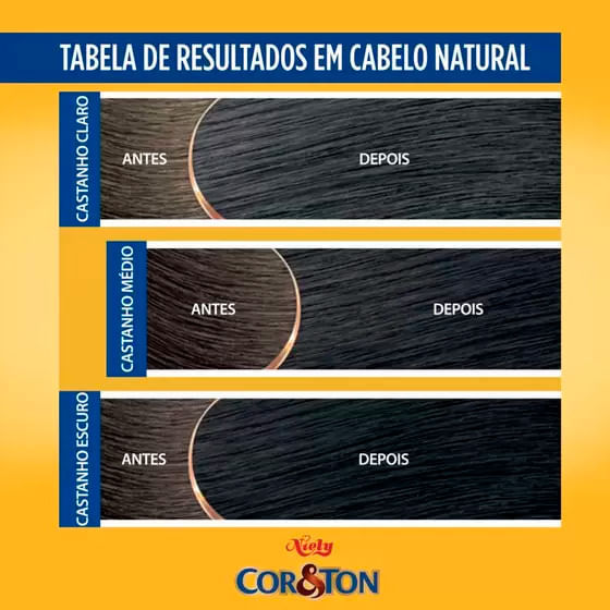 A Tintura Creme Cor e Ton é uma coloração permanente com fórmula de altíssima qualidade. Oferece uma cobertura completa de fios brancos, proporcionando uma cor intensa e luminosa, além de deixar o cabelo macio e nutrido. Benefícios: - Proporciona aos cabelos cores vivas, luminosas e duradouras; - Total cobertura dos fios brancos; - Hidratação, sedosidade e brilho; - Com queratina, gérmen de trigo, silicone e filtro UV que garantem cabelos fortes, nutridos e com máxima proteção; - Com textura cremosa, facilita a distribuição nos fios, fazendo com que os pigmentos sejam facilmente absorvidos. Modo de usar: Coloque as luvas. Despeje todo o conteúdo da bisnaga de Cor&Ton em uma vasilha de plástico com toda a Emulsão Reveladora. Com o auxílio de um pincel, misture bem até formar uma consistência homogênea. Separe pequenas mechas dos cabelos aplicando o produto na raiz, comprimento e pontas. Deixe agir por 30 minutos. O tempo de pausa é muito importante. Terminando o tempo de pausa, enxágue os cabelos com bastante água, eliminando todo o produto. Não é necessário lavar os cabelos com shampoo. Nos cabelos ainda úmidos, aplique o conteúdo do Sachê de Tratamento, massageando delicadamente. Deixe agir por 3 minutos e enxágue. Sobre a marca:Presente há 40 anos no mercado nacional, Cor&Ton é referência em coloração e eleita uma das marcas top of mind pela Folha de São Paulo em 2023. ? sendo há 14 anos líder de mercado entre as consumidoras. Cor&Ton é a marca que pinta, hidrata e dura um tempão, levando a consumidora brasileira há uma marca de 94% de confiança. *Imagem meramente ilustrativa. A embalagem está sendo atualizada pelo fabricante.