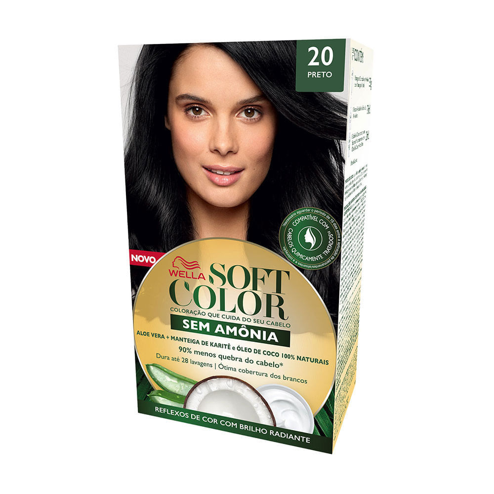 TINTURA SOFT COLOR SEM AMÔNIA PRETO Compatível com cabelos quimicamente tratados. Aloe Vera + Manteiga de Karitê e Óleo de Coco 100% Naturais. 90% menos quebra do cabelo. Dura até 28 lavagens. Ótima c