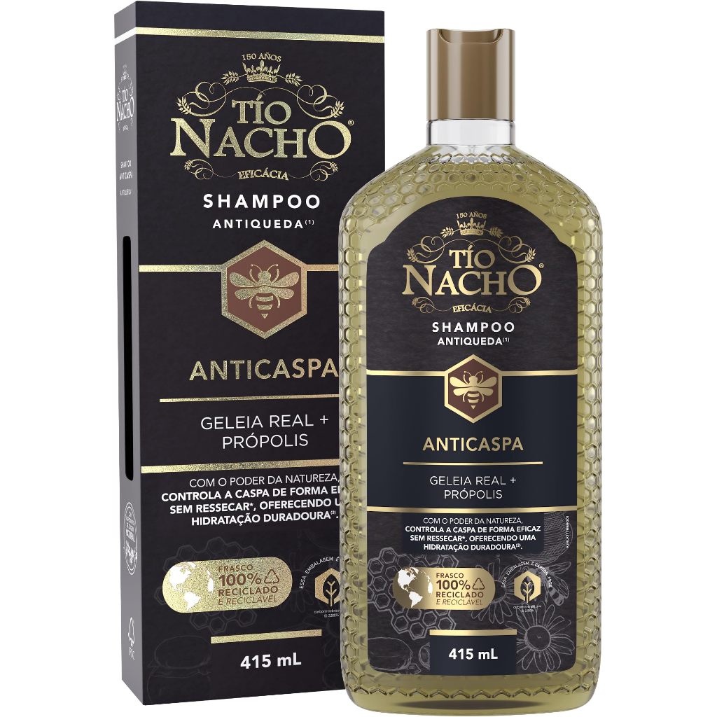 O Tío Nacho Shampoo Anticaspa possui ingredientes de origem natural: geleia real + própolis. Com o poder da natureza, controla a caspa aparente sem ressecar, oferecendo uma hidratação duradoura por 24 horas. Sua fórmula combate a caspa do couro cabeludo, diminuindo a sensação de coceira, deixando-o suave, forte e com mais brilho.