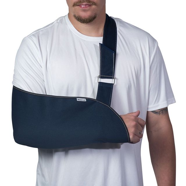 TIPOIA ORTOPÉDICA MERCUR Confeccionada em algodão, material resistente e lavável, pode ser utilizada tanto no braço direito quanto no esquerdo. O ajuste da alça da tipóia pode ser realizado de maneira