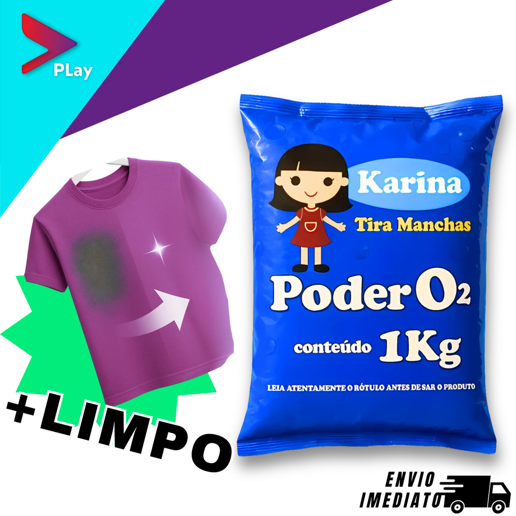 Bem vindo a Play Market Aqui você é nossa prioridade. *Atenção anúncio com variação, escolha quantidade desejada* Alvejante com Percarbonato de Sódio removedor de manchas e excelente fragrância. Abaixo, exemplo de uso e suas principais funções. Desinfecção: O alvejante em pó possui propriedades desinfetantes, capazes de eliminar germes, bactérias, vírus e fungos presentes em tecidos, superfícies e utensílios domésticos. Remoção de manchas: O alvejante em pó é conhecido por sua eficácia na remoção de manchas difíceis em roupas, como manchas de café, chá, vinho, grama, sangue e suor. Ele pode ajudar a restaurar a aparência original das peças de vestuário, tornando-as mais limpas e brilhantes. Tira machas poder O2 Karina remove todos os tipos de manchas, desde as mais visíveis até aquelas bem pequenas que não foram vistas antes de iniciar a lavagem. Use o tira manchas Karina poder O2 em vários tipos de manchas, como: gordura, vinho tinto, suco de frutas, café, água, chá, manchas causadas por animais domésticos, grama, lama, refrigerante. Como usar alvejante em pó de forma segura ? Para usar alvejante em pó de forma segura, é importante seguir algumas recomendações, tais como: Ler atentamente as instruções de uso do produto antes de utilizá-lo Verificar se o tecido é compatível com o alvejante em pó e se a cor da roupa pode ser alvejada com segurança Fazer um teste em uma pequena área da roupa antes de aplicar o alvejante em toda a peça Utilizar luvas ao manusear o alvejante em pó para evitar irritações na pele Não misturar o alvejante em pó com outros produtos químicos, como água sanitária ou amônia Diluir o alvejante em pó em água antes de aplicá-lo nas roupas Não exceder a quantidade recomendada de alvejante em pó para evitar danos aos tecidos Seguindo essas recomendações, é possível utilizar o alvejante em pó de forma segura e eficaz na remoção de manchas e clareamento dos tecidos. É importante lembrar que existem diferentes tipos de alvejantes, como os com cloro e os sem cloro, e que cada um possui instruções específicas de uso. Por isso, é fundamental ler as informações presentes na embalagem do produto antes de utilizá-lo. Como diluir alvejante em pó antes de usar ? Para diluir alvejante em pó antes de usar, siga as seguintes recomendações: Verifique as instruções de uso do produto na embalagem para saber a quantidade recomendada de alvejante em pó a ser utilizada Coloque a quantidade recomendada de alvejante em pó em um recipiente com água Misture bem o alvejante em pó na água até que esteja completamente dissolvido Utilize a solução diluída de alvejante em pó para aplicar nas roupas ou objetos que deseja limpar É importante lembrar que o alvejante em pó deve ser diluído em água antes de ser utilizado, pois o uso direto do produto pode danificar os tecidos e objetos. Além disso, é fundamental seguir as instruções de uso do produto presentes na embalagem e fazer um teste em uma pequena área da roupa antes de aplicar o alvejante em toda a peça. Tira machas poder 02 Karina é seguro para roupas e tecidos brancos e coloridos e pode ser usado em água com alta temperatura ou até mesmo em água fria. Modo de usar: (1 medida = 20g) Lavagem na máquina: 2 medidas junto ao detergente líquido de sua preferência. Para manchas mais resistentes, use 3 medidas. Molho: - Coloridas: máximo 1 hora - Brancas: máximo 6 horas Dissolva 2 medidas em 4 litros de água morna até 40ºC. Prossiga a lavagem com o detergente líquido de sua preferência e enxágue. Para manchas resistentes, use 3 medidas. Pré-Lavagem: Manchas resistentes: Dissolva 1 medida em 100ml de água à temperatura de 50ºC. Misture rapidamente até formar um creme espumante. Aplique diretamente na mancha. Deixe agir por 10 minutos. Para manchas menos resistentes, utilize 1/2 medida em 500ml de água a temperatura de 40ºC, e deixe agir no máximo por 30 minutos. Dissolva completamente o produto Utilize a solução imediatamente após o preparo. Prossiga a lavagem com o detergente de sua preferência e enxágue.
