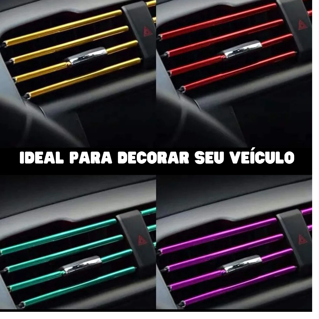 Características: Pacote com 10 peças Decoração personalizada para saída do ar do seu carro. Com 4 opções de cores: vermelho, azul, roxo e prata. Fácil de usar, basta cortar o comprimento que você precisa, coloque a tira na saída de ventilação de ar, pressione bem. Alta qualidade, PVC cromado e flexível, reutilizável e durável. Comprimento: aproximadamente 20cm * Para decoração do painel ou outros, temos opções em nossa loja.