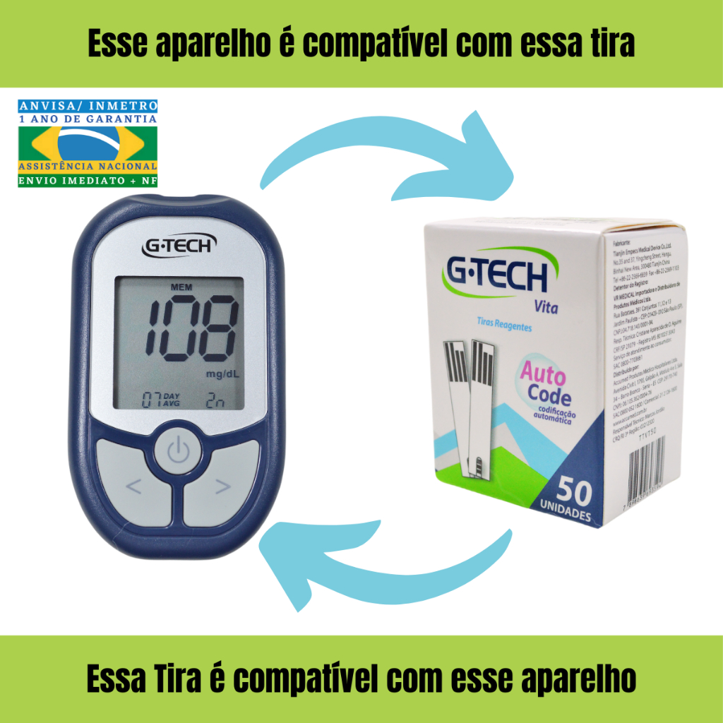 LANÇAMENTO! NOVA LINHA GLICOSE G-TECH VITA! TUDO NOVO! NOVAS TIRAS G-TECH VITA *TIRAS EXCLUSIVAS PARA A NOVA LINHA G-TECH VITA* ***ATENÇÃO: DÚVIDAS SOBRE QUAL APARELHO AS TIRAS SÃO COMPATÍVEIS PODEM SER VERIFICADAS NAS FOTOS DESTE ANÚNCIO*** KIT COMPOSTO POR: 50 Tiras 100 Lancetas TIRAS REAGENTES G-TECH VITA Em conjunto com o Medidor de Glicose G-TECH Vita, apresenta resultados precisos e seguros, contando com a tecnologia Auto Code, que se dispensa codificação prévia, tornando o ato de medir glicose, mais simples e rápido. Com a moderna enzima Glicose Desidrogenase (FAD-GDH) é possível ter resultados de amostras de sangue capilar e venoso total, sendo assim, uma excelente ferramenta tato para o uso residencial quanto de ambiente hospitalar.
