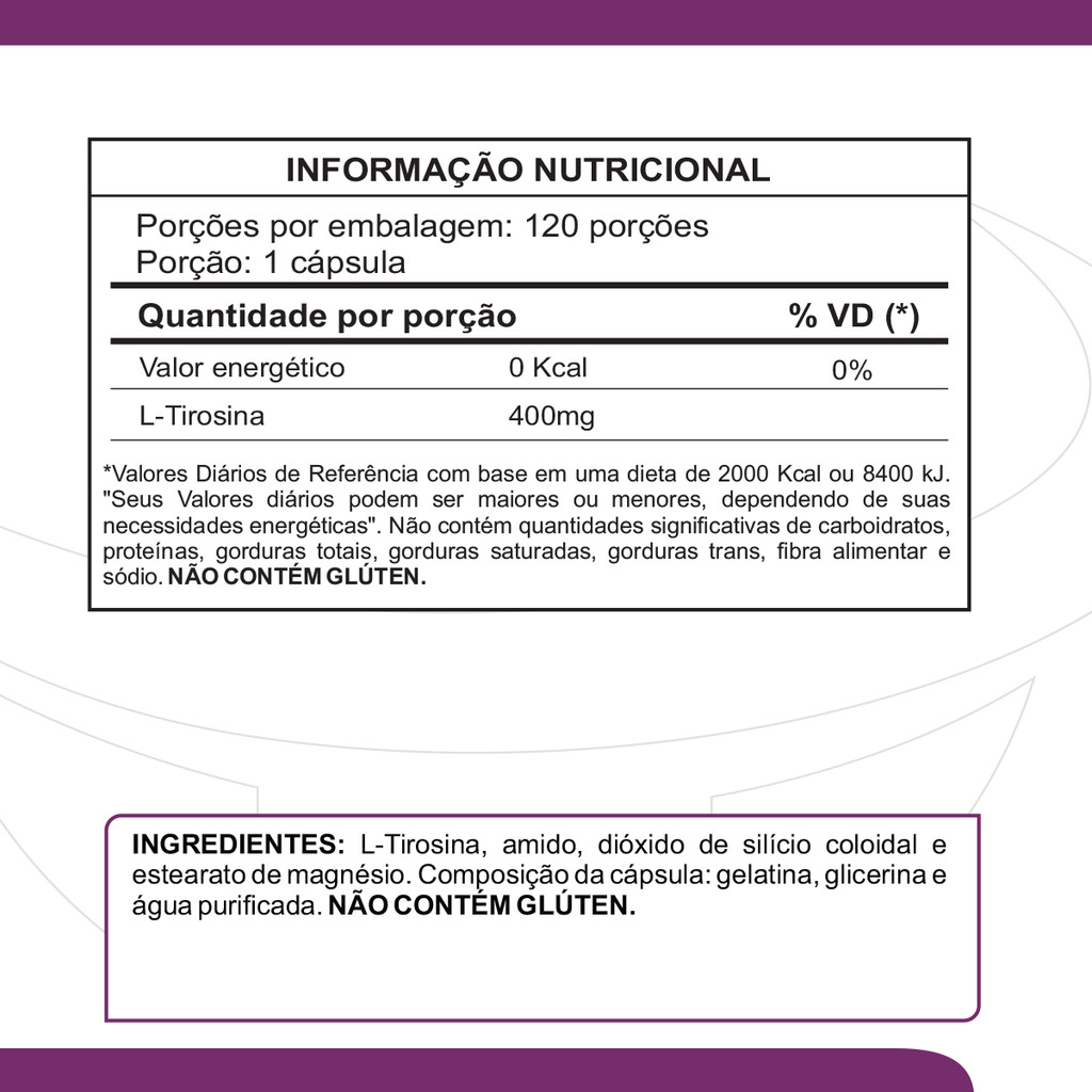 Tirosina 400mg 120 Cápsulas Foco Cognitivo Performance Mental Lot Nutrition