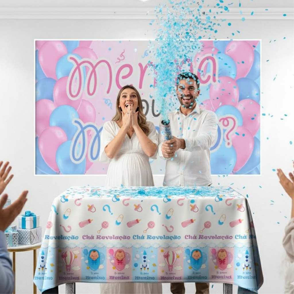 TNT Estampado Chá Revelação Menina ou Menino Toalha/Painel - Decoração Festa