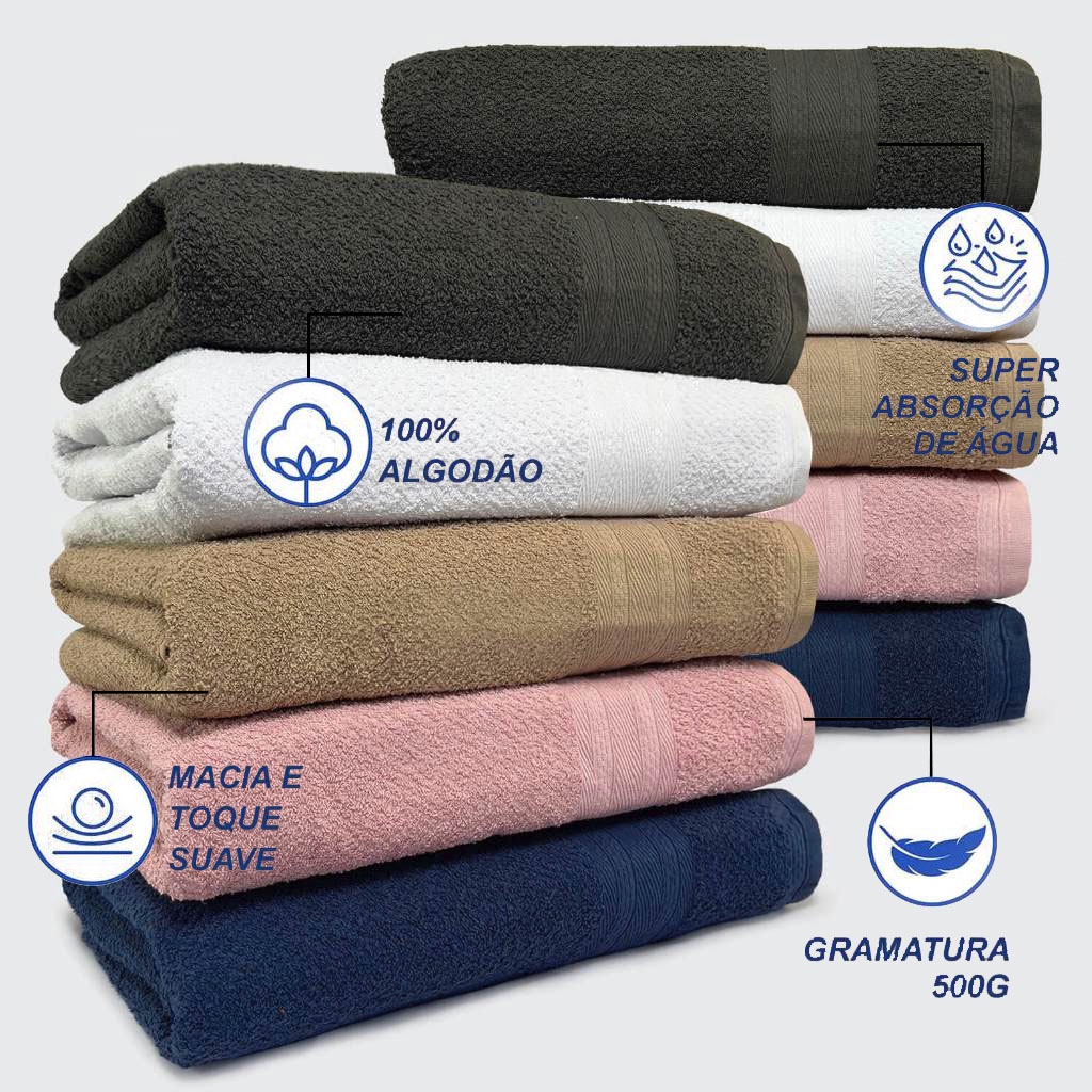 Toalha Banho Algodão Grande Grossa Felpuda 75x160 500g/m² 100% Algodão Macia