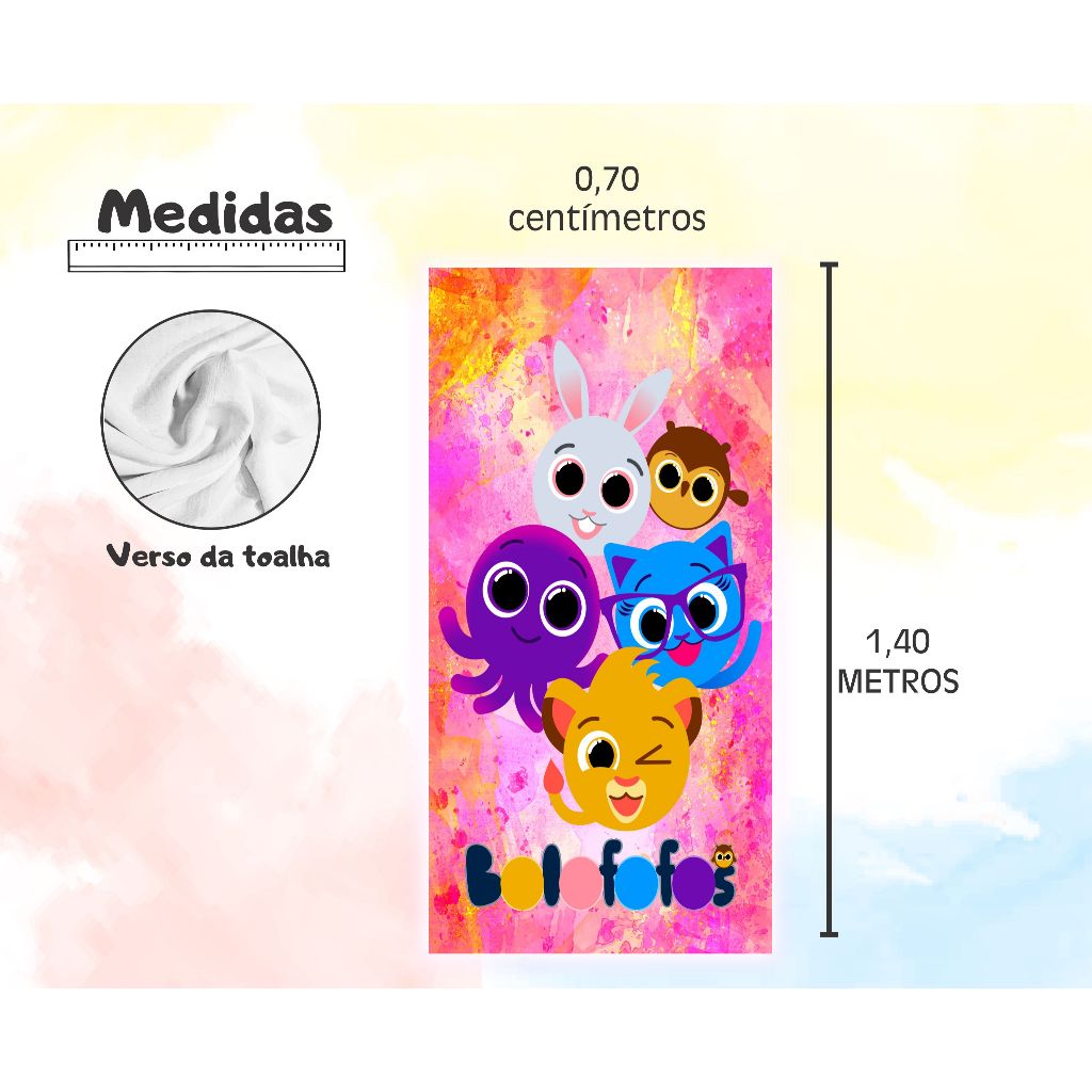Toalha Banho e Praia Infantil Desenhos Bolofofo praia aveludada- 1,35x 0,70m