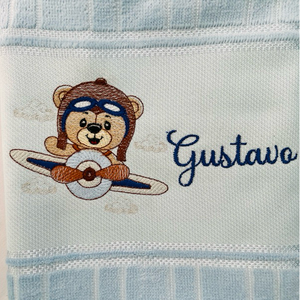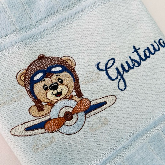 Toalha Bordada Personalizada com Nome Ursinho Aviador