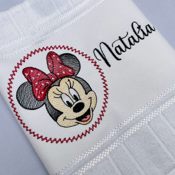 Toalha Bordada Personalizada Minnie Mouse Circulo