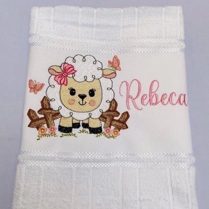 Toalha Bordada Personalizada Ovelha Cenario Fazenda com Nome