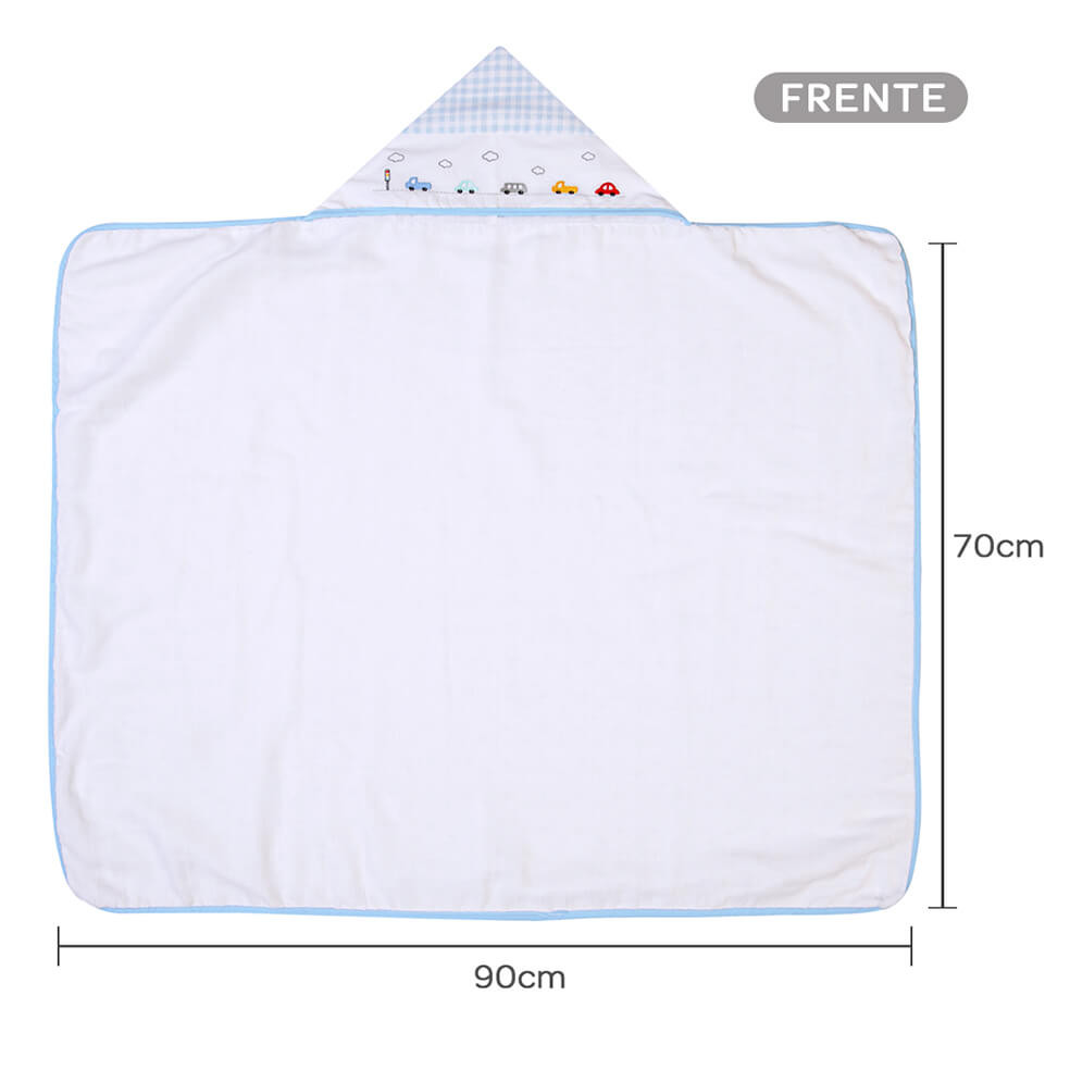 Toalha Com Capuz Bordados Papi Felpuda Carros Coloridos A Toalha de Banho Bordados Papi oferece conforto e suavidade para os cuidados pós-banho do seu bebê. Confeccionada em tecido felpa 100% algodão e revestida com forro de fralda soft, proporciona uma experiência delicada para a pele sensível do bebê. O capuz bordado e estampado adiciona um toque encantador, transformando o momento do banho em uma experiência especial. Para uma experiência ainda mais aconchegante, após o banho, envolva seu bebê na toalha, aproveitando o capuz para proteger a cabecinha. Este é um gesto carinhoso que não apenas mantém o bebê aquecido, mas também proporciona um momento de conexão e conforto. Informações Adicionais:Tamanho: Único Cor: Azul Referência: 4937-3999 Medidas aproximadas: 90cm x 70cm Marca: Bordados Papi