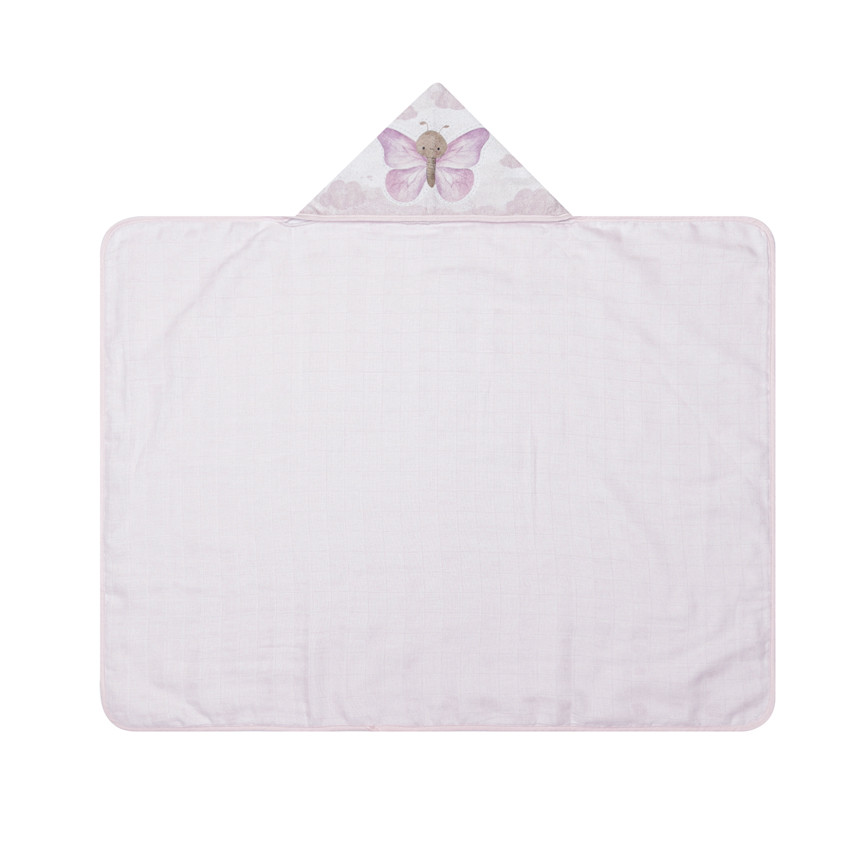 Toalha Com Capuz Papi Felpuda Forrada Estampa Borboleta