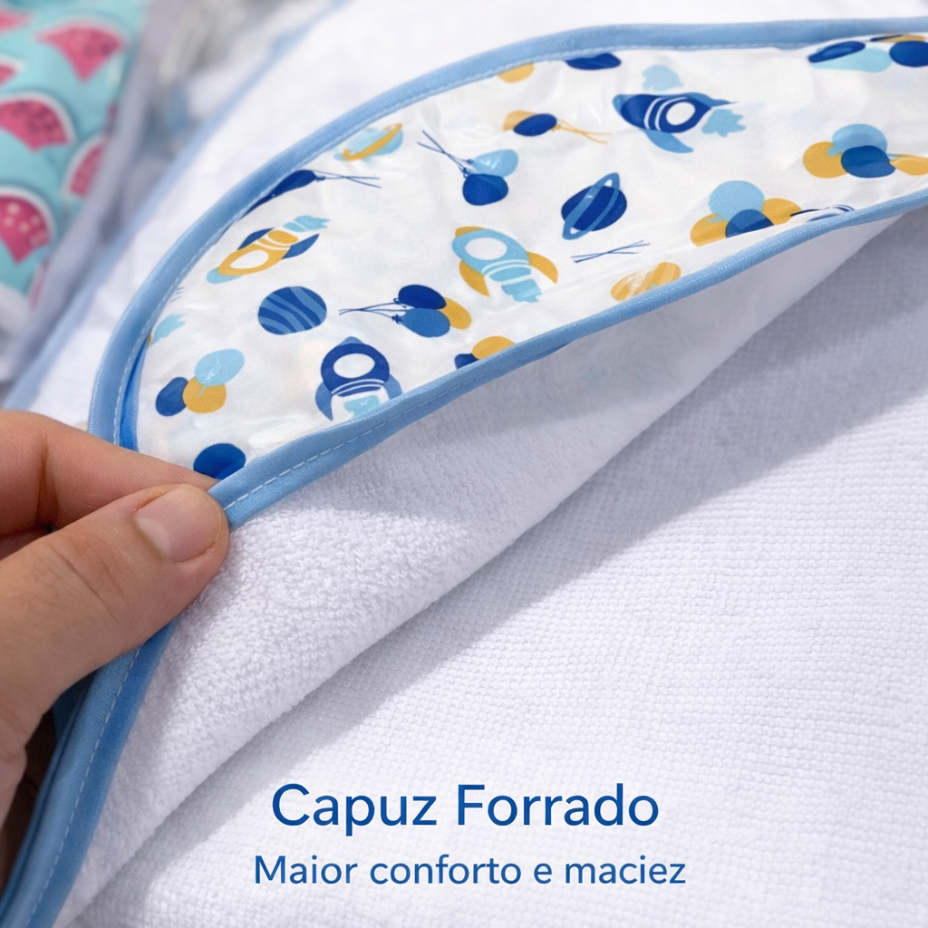 Toalha de Banho Bebê com Capuz Forrada Atoalhada Premium Alta Absorção – Roupão Infantil
