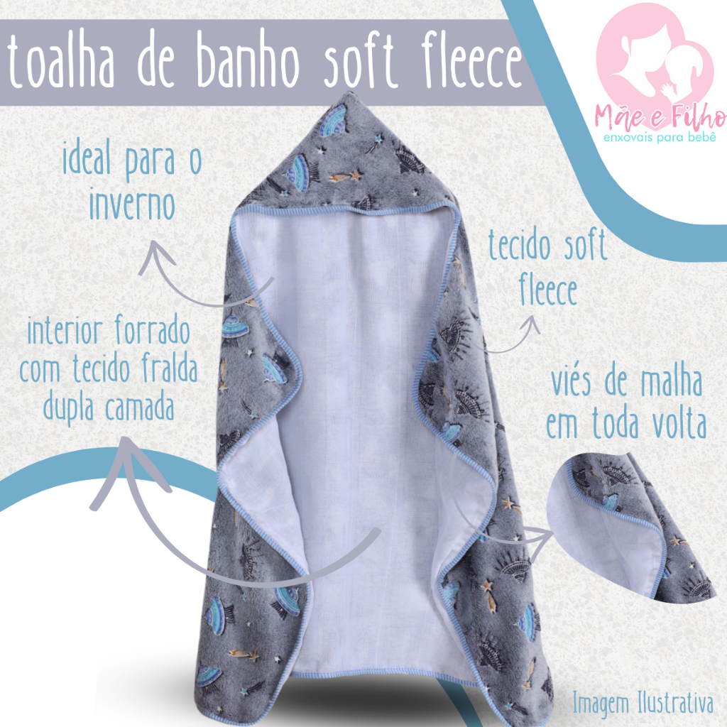 Toalha de Banho Bebê Tecido Soft Fleece Forrada em Fralda 100% Algodão com Capuz
