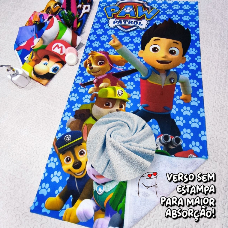 🧣 Toalha de Banho e Praia Personalizada Temática Infantil Azul Menino Gigante Algodão Produto: ⭐⭐⭐⭐⭐ A pronta entrega: 🚛 Fotos Reais dos Produtos 📱 🔴 O que contém no kit? 🔴 - 01 Toalhas De Banho Gigante 💥QUER ESCOLHER O MODELO???? - Manda a print das imagens que deseja no chat! ❤️ Temos diversas estampas para escolher: - Personagens infantis - Princesas - Desenhos - Animes - Super heróis - Futebol - Cachorros 📜 Especificações: - 70% Algodão - 30% Poliéster - 200 g/m²; 📐Tamanho do produto: - Largura 70 cm x Altura 1,4 metros 🥰 Como prolongar a vida útil do produto? - Lavar com temperatura máxima de 60° C. - Não alvejar. - Secar com temperatura baixa. - Passar com temperatura máxima de 150° C. - Não limpar a seco. 🤔 DÚVIDAS? - Entre em contato conosco pelo chat, será um prazer respondê-los, estamos sempre à disposição.