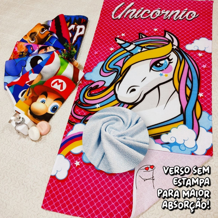 Toalha de Banho e Praia Personalizada Temática UNICÓRNIO Infantil Gigante