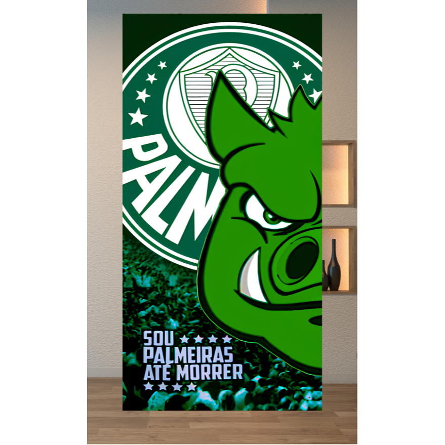 Toalha de Banho e Rosto/Mão Time Palmeiras Verdão e Porco Praia Piscina Felpa Estampada