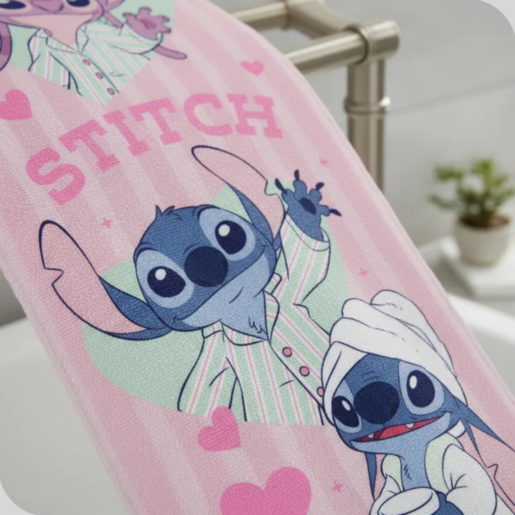 Toalha De Banho Felpuda Estampada Stitch Angel 60cm x 1,20m Rosa Lepper