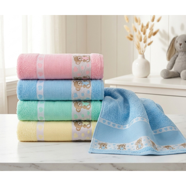 Toalha De Banho Infantil Kids Macia Ponto Cruz Barras Com Desenhos Bordados 75x1.10m