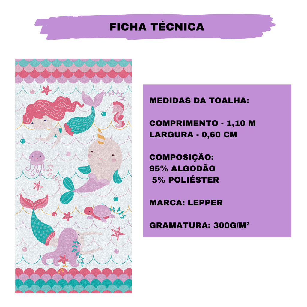 Toalha De Banho Infantil Sereia Cute Algodão 70x140