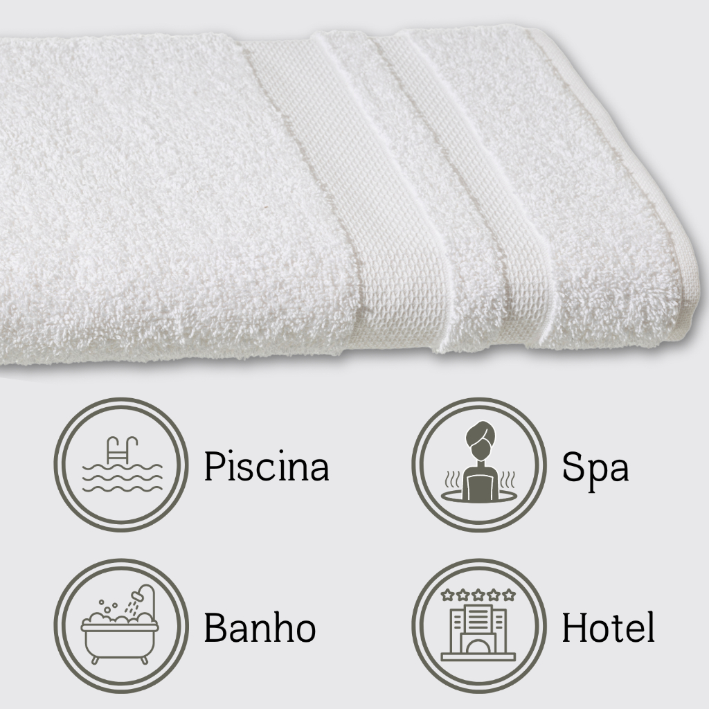 Toalha de Banho Luxo Branca Hotel 500g/m² Puro Algodão Macia Aveludada Spa AirBnb Alta Gramatura