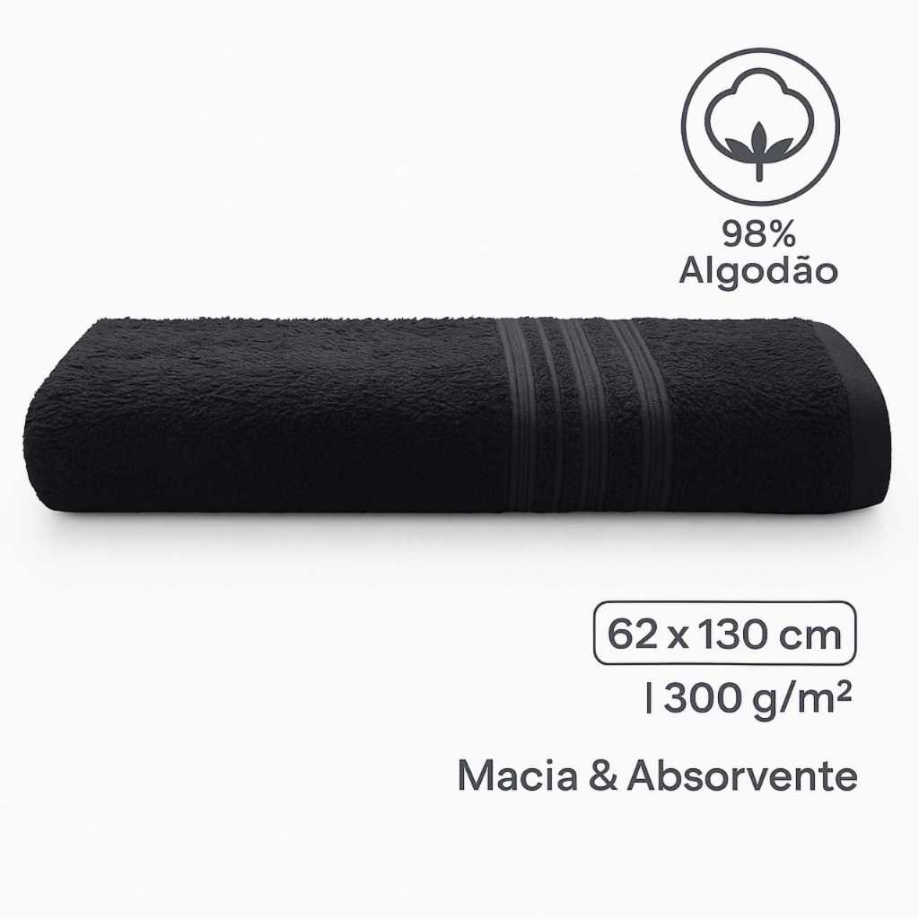 Toalha de Banho Preto Camesa 62x130 Algodão Macia Absorvente Hotel Dia a Dia