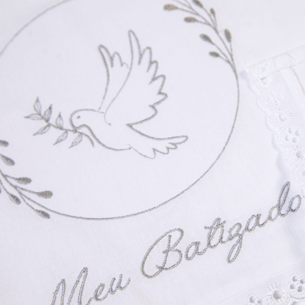 Toalha De Batismo Bordados Papi Meu Batizado A Toalha de Batismo Bordados Papi é uma escolha elegante e significativa para cerimônias especiais. Confeccionada em 100% algodão, esta toalha oferece suavidade e conforto para o bebê durante um momento tão especial. Cada detalhe é cuidadosamente bordado, adicionando um toque personalizado e simbólico à peça. Além de sua função durante a cerimônia de batismo, esta toalha pode se tornar uma lembrança preciosa e duradoura. Após a cerimônia, ela pode ser guardada como recordação desse momento único na vida do bebê. Informações Adicionais: Tamanho: Único Cor: Branco Referência: 1729-4013 Medidas aproximadas: 60cm x 40cm Marca: Bordados Papi