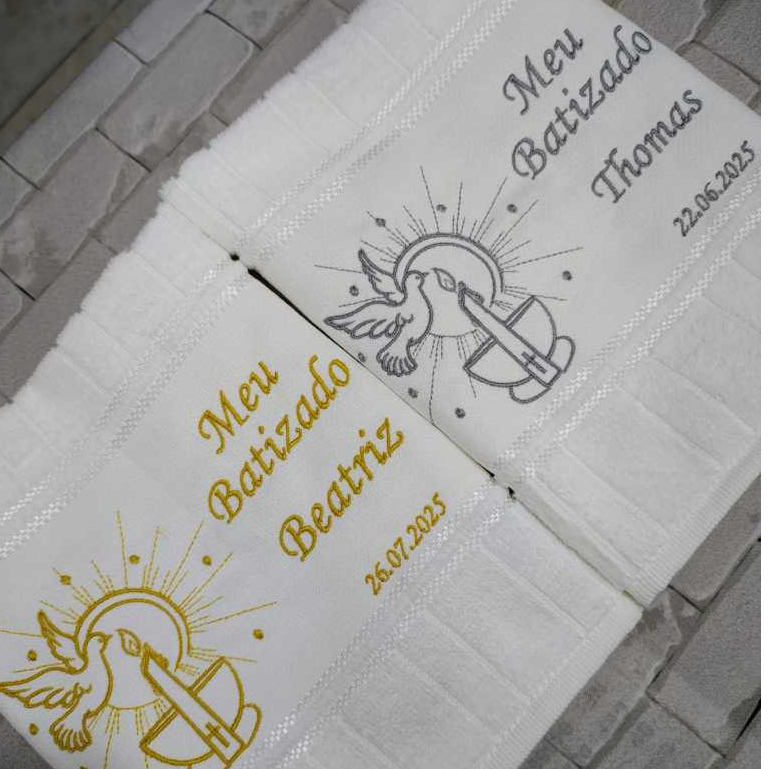 Apresentamos a Toalha de Batizado personalizada, um item especial, feito sob medida para tornar esse momento ainda mais inesquecível. Nossa toalha de batizado tem medida de 30x45 cm, confeccionada em tecido felpudo de altíssima qualidade, com toque aveludado, super macia e confortável. Cada detalhe é cuidadosamente bordado, com o nome da criança, a data do batizado e uma arte religiosa delicada, transformando essa toalha em uma verdadeira lembrança de fé e amor. Ideal para cerimônias de batismo, tanto para uso na hora da bênção quanto como lembrancinha de batizado personalizada. Se você busca uma toalha de batizado com nome e data, essa é a escolha perfeita. Produto feito com muito carinho, cuidado e capricho, atendendo famílias que valorizam tradição, beleza e significado. Garanta já sua toalha personalizada para batizado, um presente especial para eternizar esse momento único na vida da criança e da família.