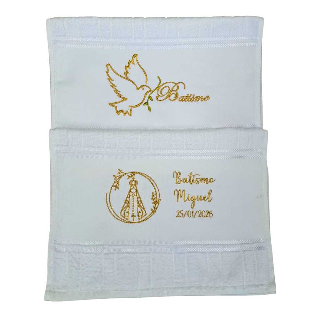 ✨ Toalha de Batizado Personalizada – Lembrança de Batismo com Nome e Data ✨ 🤍 Ideal para lembrança de batizado de padrinhos, madrinhas, avós e familiares. Celebre esse momento especial com uma toalha de batizado personalizada, delicada e sofisticada. Uma recordação única e significativa da cerimônia, perfeita para o batismo ou para presentear pessoas especiais. 💎 DIFERENCIAIS DA NOSSA LOJA ✅ Personalização Completa Bordamos o Nome da Criança + Data do Batismo (já incluso no valor). ✅ Bordado de Alto Padrão Utilizamos linhas metalizadas premium Dourado ou Prata, com acabamento elegante e brilho sofisticado. ✅ Produção Própria Ateliê com 2 bordadeiras profissionais, garantindo precisão, qualidade e rapidez. ✅ Envio Rápido em 24h Produto a pronta entrega. Confirmou os dados? Bordamos e enviamos! 📏 ESPECIFICAÇÕES • Tamanho: Lavabo / Toalha de boca (aprox. 30 x 45 cm) • Material: 100% algodão macio e absorvente • Cor da toalha: Branco clássico, tradicional para cerimônias de batizado • Cor do bordado: Dourado ou Prata ⚠ Atenção: Este produto é uma toalha de lavabo/boca, não é toalha de banho. 📝 COMO PERSONALIZAR Após finalizar a compra, envie no chat: • Nome da criança • Data do batismo • Cor do bordado (Dourado ou Prata) 📌 Envie os dados logo após a compra para agilizar o envio do pedido. 🎁 PROMOÇÃO DE KIT – LEVE MAIS POR MENOS Compre 3 ou mais unidades (criança + padrinhos) e ganhe 5% de desconto automático no carrinho. Perfeito para: • lembrança de batizado • presente para padrinhos e madrinhas • recordação especial do batismo 🔎 Buscas relacionadas ao produto: Toalha de batizado personalizada, lembrança de batizado, lembrancinha batizado padrinhos, toalhinha de batismo, toalha bordada batismo, lembrança religiosa personalizada, toalha batizado com nome e data, lembrança batizado menino, lembrança batizado menina, lembrança batismo padrinhos e madrinhas, toalha batizado luxo, toalha lavabo batismo personalizada.