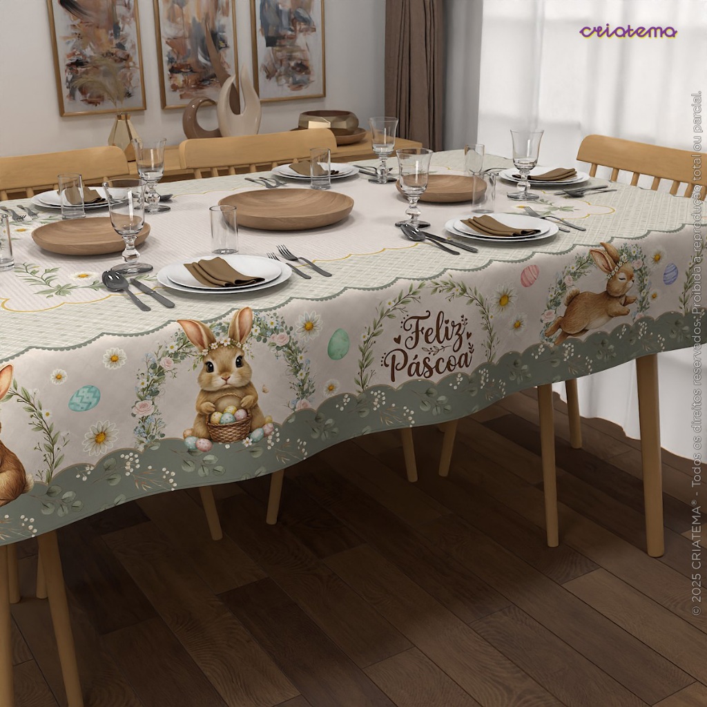 Toalha de Mesa Decoração Páscoa Retangular – Mesa Posta Para 6 Lugares 1,40x2,10m