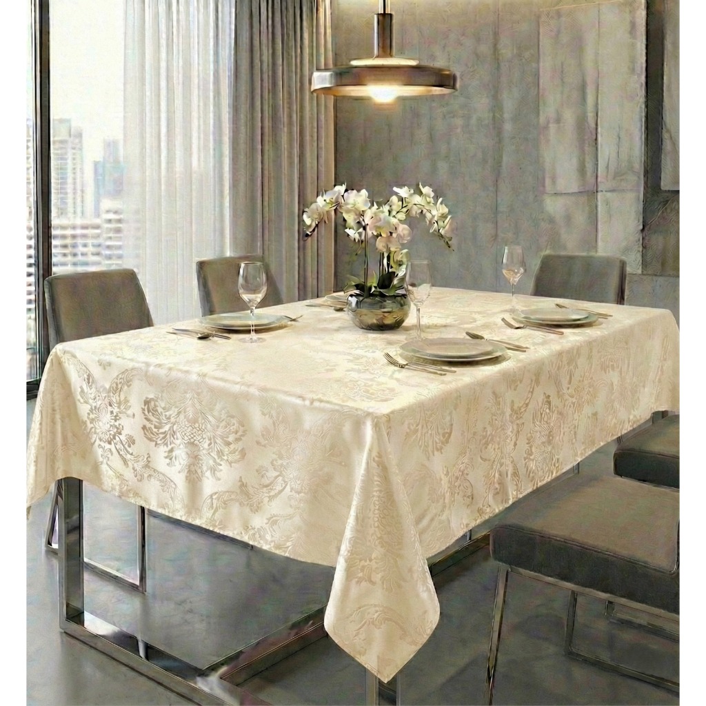 Toalha de Mesa Luxuosa Jacquard 4,6,8 Cadeiras