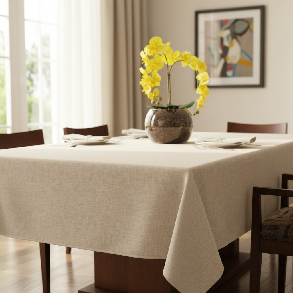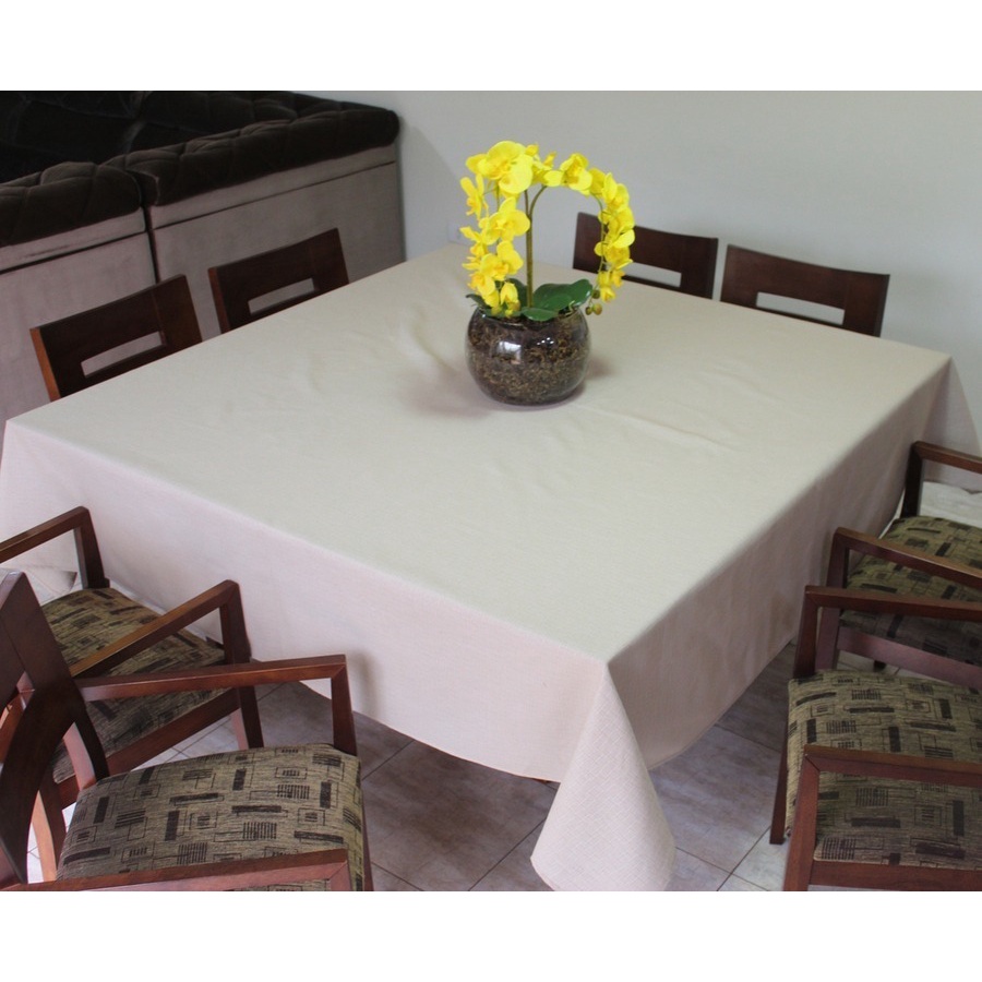 Toalha de Mesa Quadrada em Tecido Linhão 1,80m X 1,80m Palha Sala/Jantar