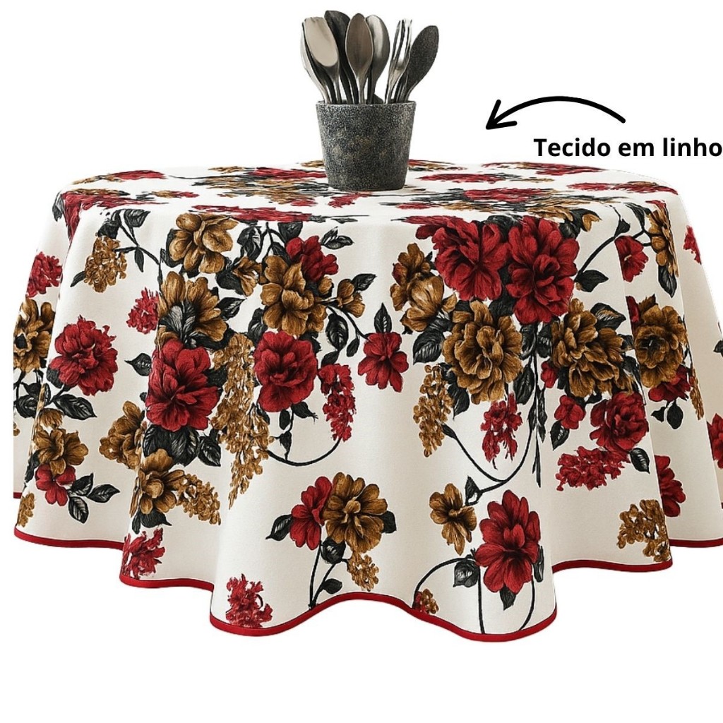 Toalha De Mesa Redonda 1,80m Para 6 Lugares Linho Vermelho