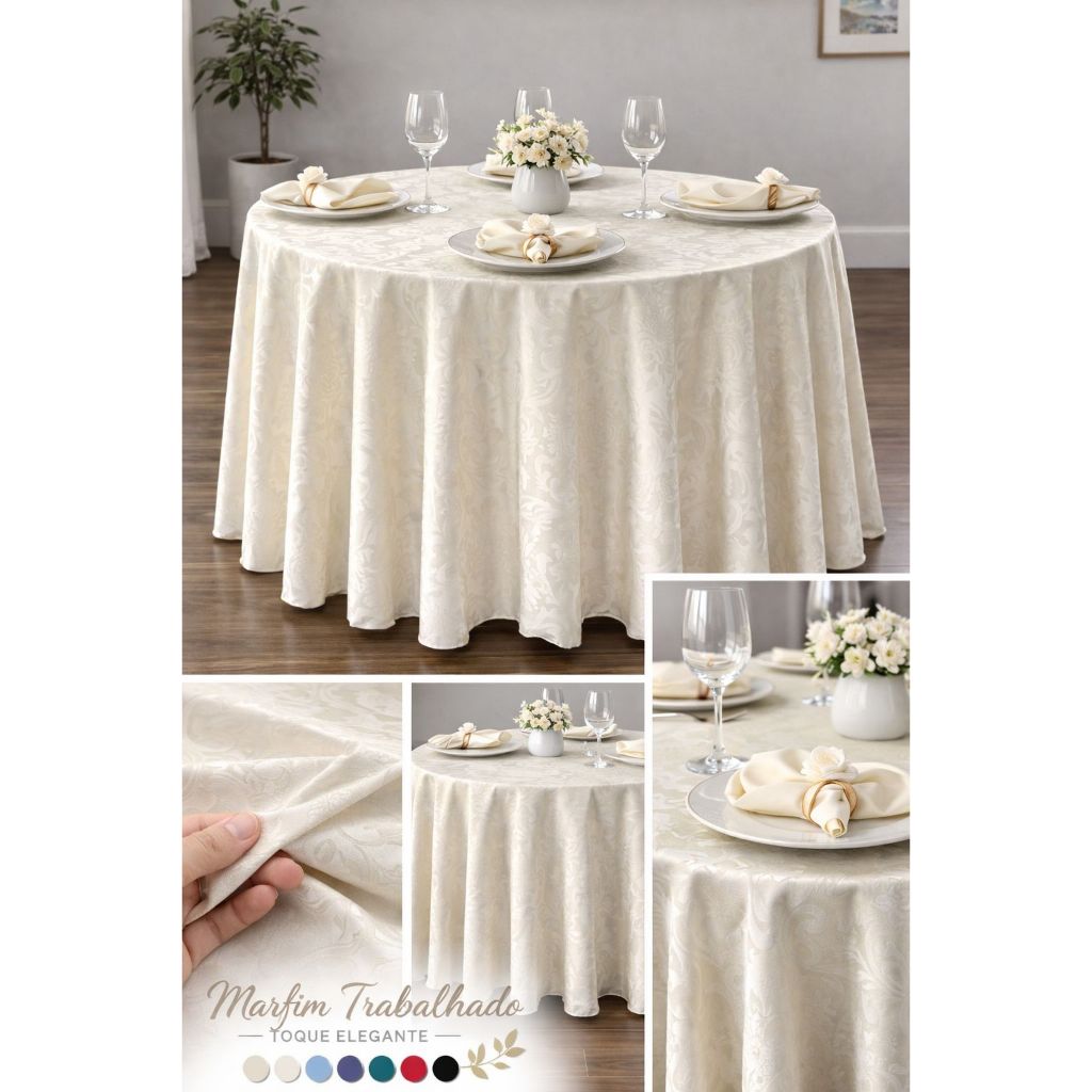Toalha de Mesa Redonda 2,80m Jacquard Luxo Festa Casamento Buffet Decoração 8 Lugares