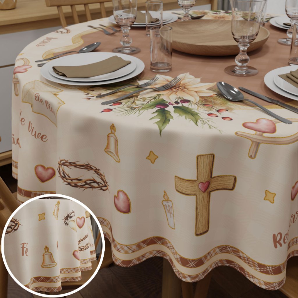 Toalha de Mesa Redonda Páscoa Religiosa Cristã para Mesa Posta Decoração Em Oxford 1,40x1,40m