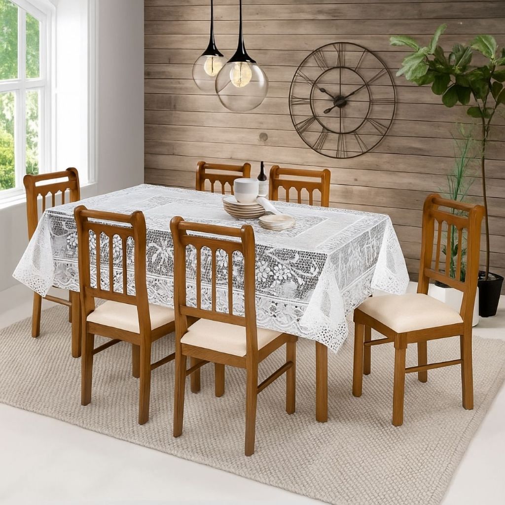 Toalha de Mesa Renda Branca 4 e 6 Lugares Elegante Decorativa Fácil de Lavar Secagem Rápida