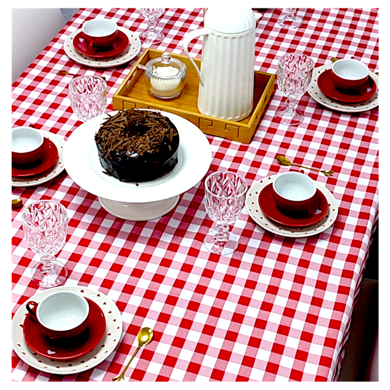 Toalha de Mesa Retangular 12 Lugares Em Oxford Xadrez 3,50m X 1,45 Picnic Piquenique Vermelho