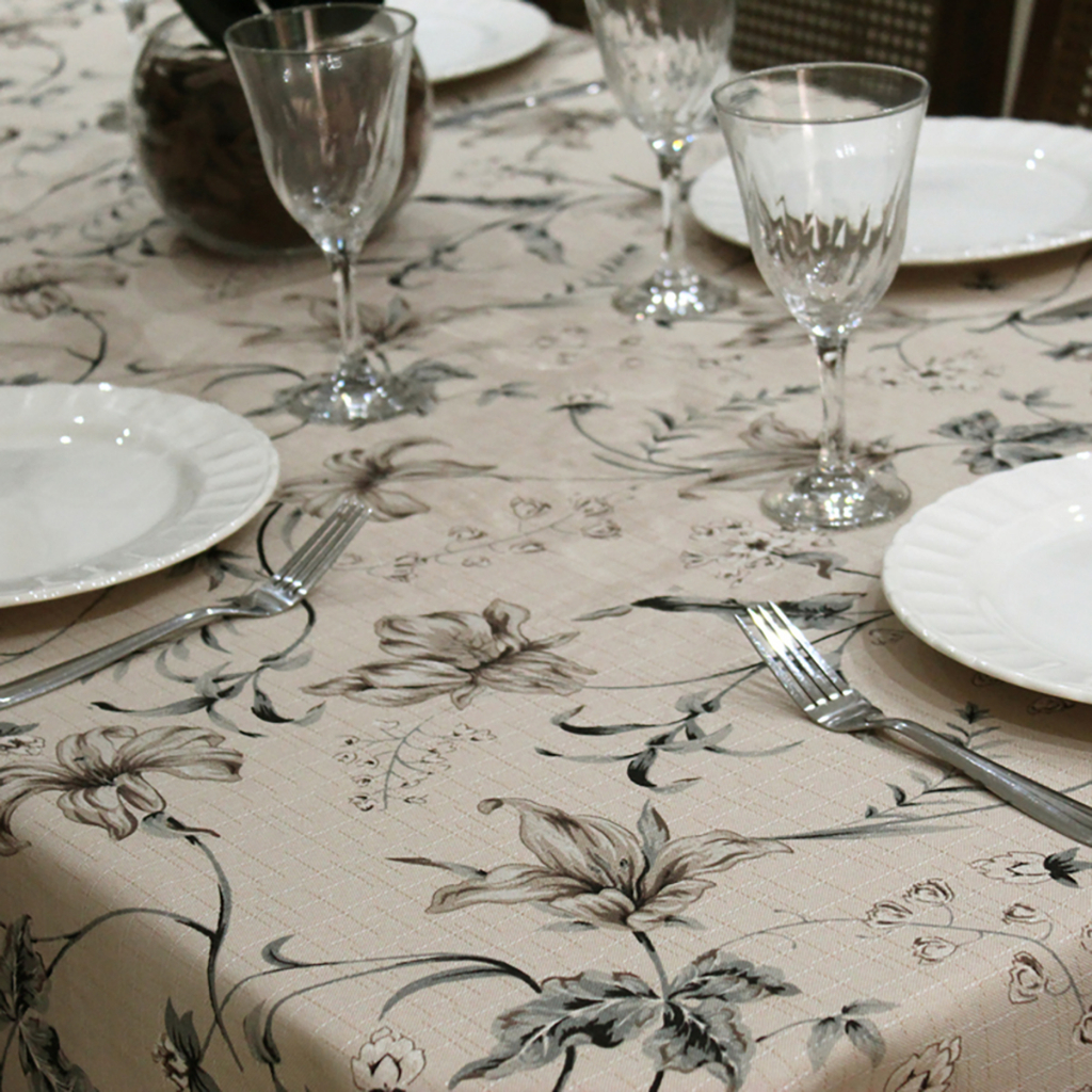 Toalha de Mesa Retangular 6 Lugares Linhão Estampado 2,20m X 1,40m Floral Cinza Sala/Jantar